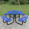 Уличная мебель, коммерческая сталь, круглый стол для пикника, ресторан, патио, металлические обеденные столы со стулом и отверстием для зонта1